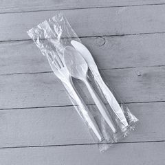 Serve virtually any meal with this cutlery kit. Each pre-packaged, cutlery wrapped kit contains a medium weight plastic fork, spoon, and knife. The convenient kits make set-up for an event or packing a to-go meal quick and easy. Individually packaged for convenience and to ensure utensils remain sanitary, even after handling. Perfect for outdoor gatherings, large parties, and take-out meals.
